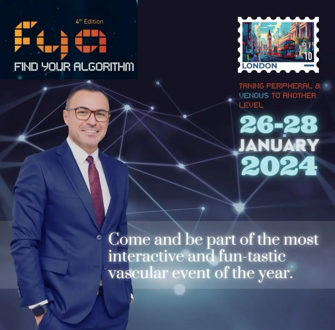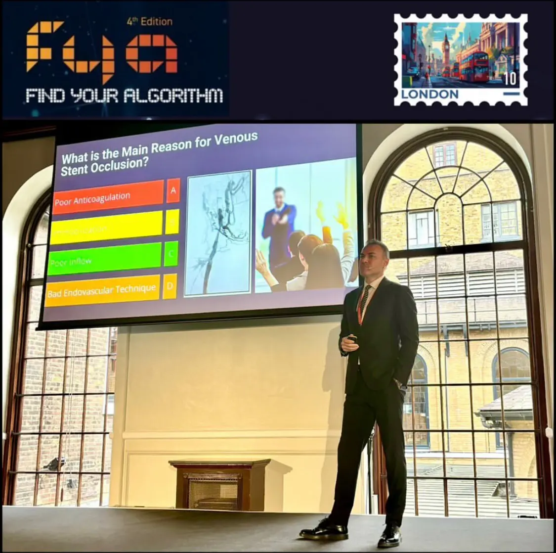 Prof.Dr. Mert Dumantepe 2024 yılının ilk uluslararası akademik konfreransı “FYA 2024” için İngiltere’deydi. Bu yıl 2.‘si Londra’da düzenlenen “Find Your Algorithm 2024” Damar Cerrahisi Kongresinde; Akut ve Kronik derin ven trombozu tedavileriyle ilgili konuşmalar yaptı.