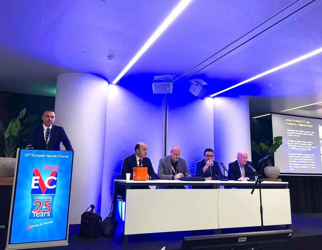 Maastrciht / Hollanda’da düzenlenen European Vascular Course kongresinde, Prof.Dr. Mert Dumantepe Akut ve Kronik Derin ven trombozu anjiografik tedavi deneyimlerini Avrupalı meslektarıyla paylaştı.