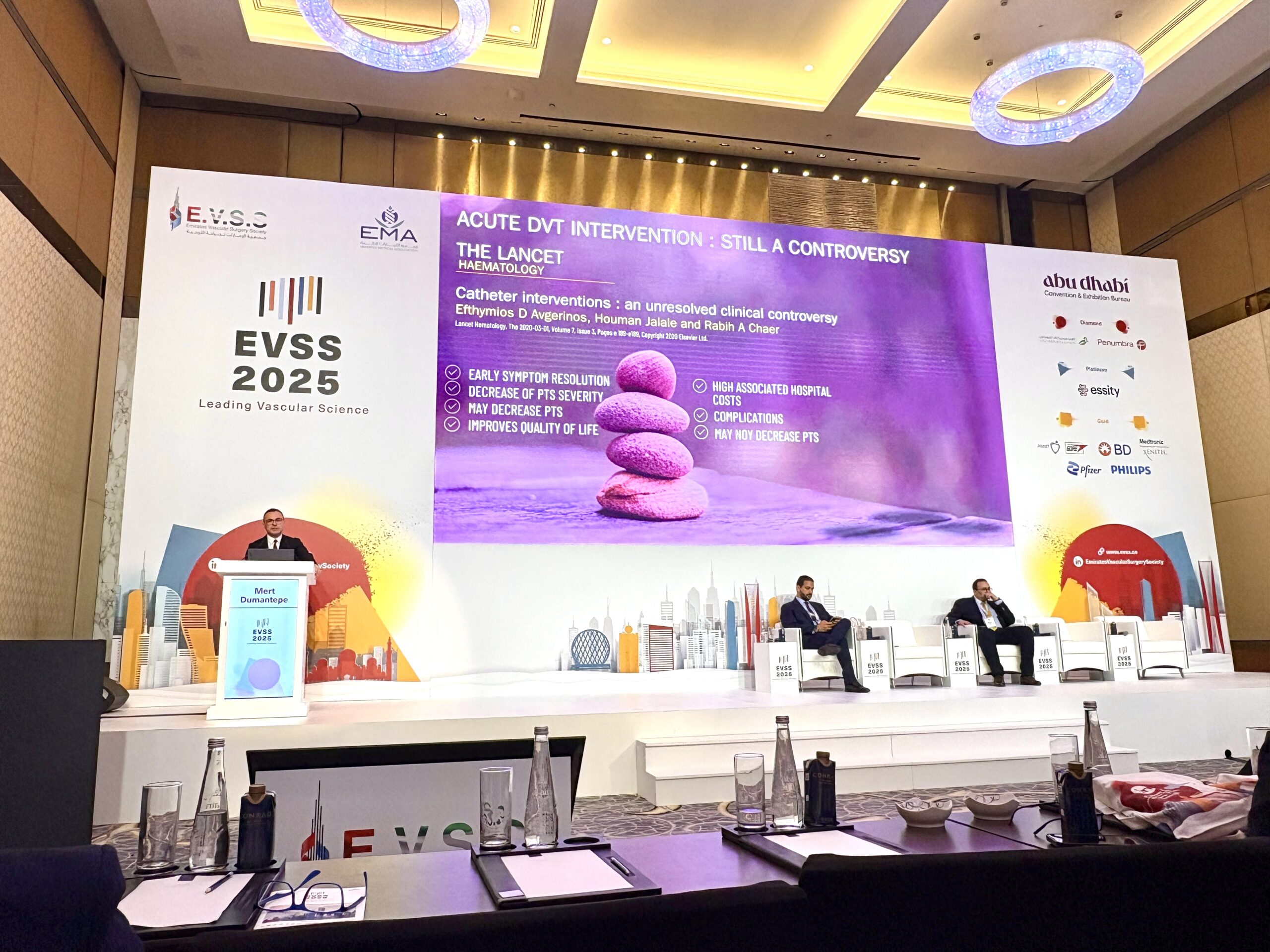 Prof.Dr.Mert Dumantepe, Derin Venöz Program direktörlüğünü yaptığı “Emirates Society of Vascular Surgery (EVSS) 2025” kongresi için Abu Dhabi’deydi. Ortadoğudaki Damar Cerrahlarının yoğun katılımıyla gerçekleşen kongrede Akut ve Kronik Derin Ven Trombozu güncel tedavi yaklaşımları, Pelvik konjesyon Sendromu tedavileriyle ilgili konuşmalar yapıp, oturumları yönetti.