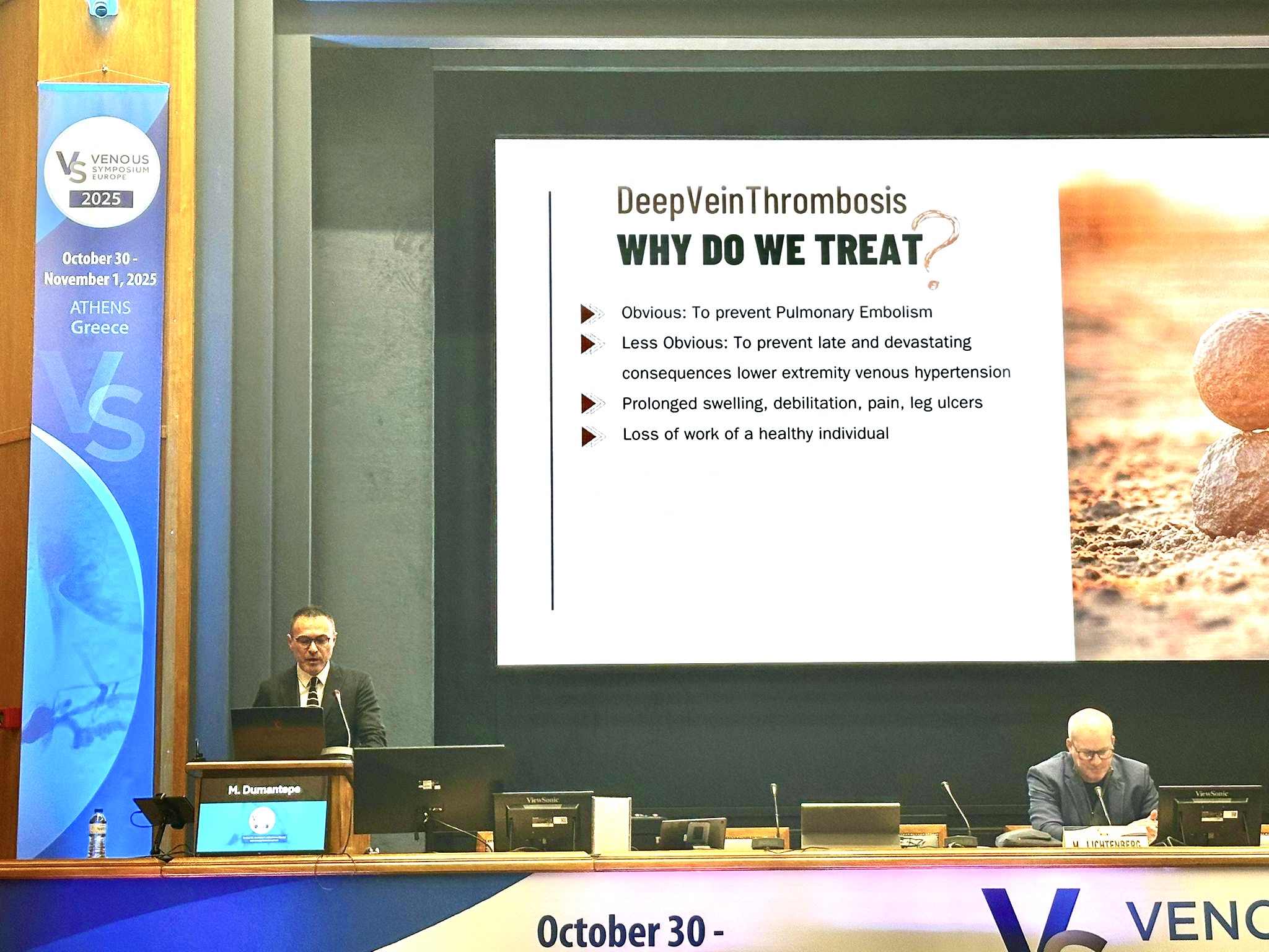 Atina’da düzenlenen “Venous Symposium Europe 2025” Kongresi, tüm Avrupa’dan venöz cerrahi alanında çok önemli isimlerin katılımıyla başarıyla tamamlandı. Prof. Dr.Mert Dumantepe, uluslararası davetli konuşmacı olarak katıldığı kongrede birbirinden farklı 3 konuşma, oturum başkanlıkları ve Workshop eğitimleri ile katkıda bulundu.